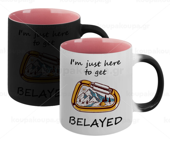 I'm just here to get Belayed, Κούπα Μαγική εσωτερικό ΡΟΖ, κεραμική 330ml που αλλάζει χρώμα με το ζεστό ρόφημα