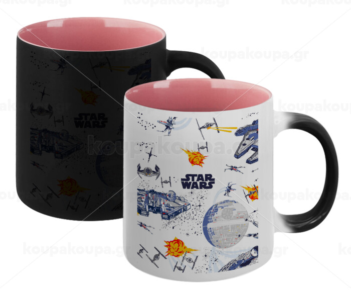 Star wars drawing, Κούπα Μαγική εσωτερικό ΡΟΖ, κεραμική 330ml που αλλάζει χρώμα με το ζεστό ρόφημα