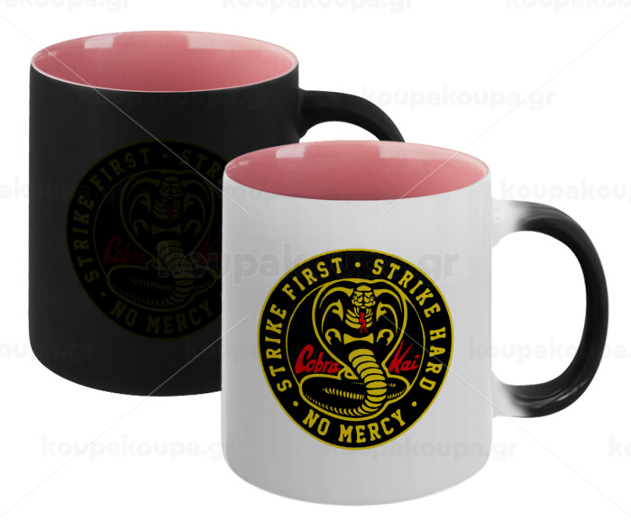 cobra kai strike first dojo, Κούπα Μαγική εσωτερικό ΡΟΖ, κεραμική 330ml που αλλάζει χρώμα με το ζεστό ρόφημα