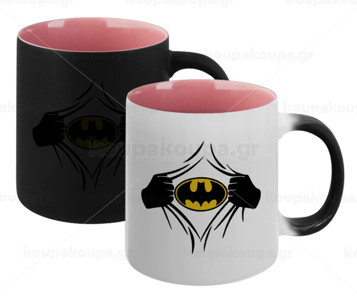 Hero batman, Κούπα Μαγική εσωτερικό ΡΟΖ, κεραμική 330ml που αλλάζει χρώμα με το ζεστό ρόφημα
