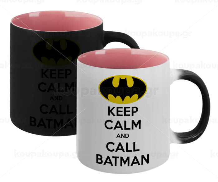 KEEP CALM & Call BATMAN, Κούπα Μαγική εσωτερικό ΡΟΖ, κεραμική 330ml που αλλάζει χρώμα με το ζεστό ρόφημα
