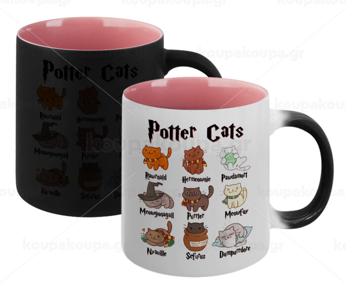 Potter Cats, Κούπα Μαγική εσωτερικό ΡΟΖ, κεραμική 330ml που αλλάζει χρώμα με το ζεστό ρόφημα