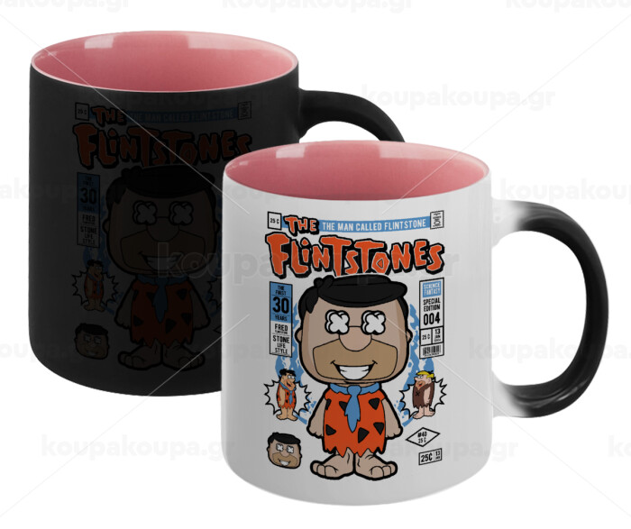 The flintstones, Κούπα Μαγική εσωτερικό ΡΟΖ, κεραμική 330ml που αλλάζει χρώμα με το ζεστό ρόφημα