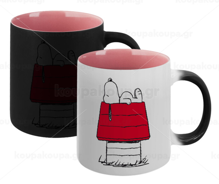 Το σπίτι του snoopy, Κούπα Μαγική εσωτερικό ΡΟΖ, κεραμική 330ml που αλλάζει χρώμα με το ζεστό ρόφημα
