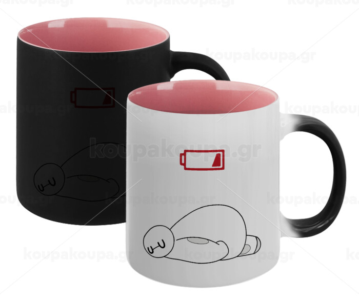 Baymax battery low, Κούπα Μαγική εσωτερικό ΡΟΖ, κεραμική 330ml που αλλάζει χρώμα με το ζεστό ρόφημα