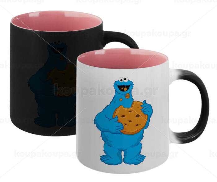 Cookie Monster, Κούπα Μαγική εσωτερικό ΡΟΖ, κεραμική 330ml που αλλάζει χρώμα με το ζεστό ρόφημα