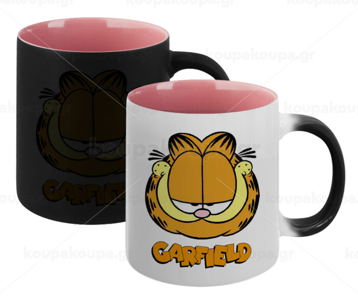 Garfield, Κούπα Μαγική εσωτερικό ΡΟΖ, κεραμική 330ml που αλλάζει χρώμα με το ζεστό ρόφημα