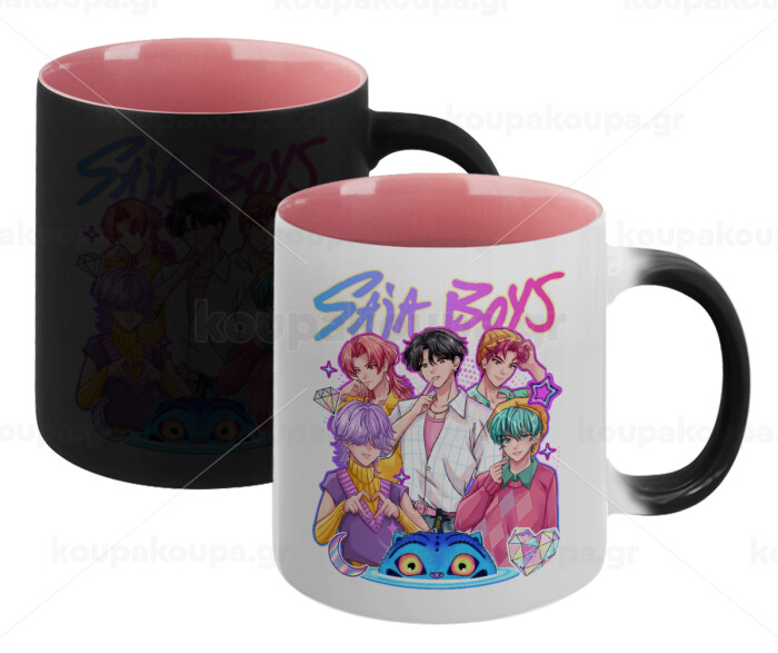 Huntrix Saja Boys, Κούπα Μαγική εσωτερικό ΡΟΖ, κεραμική 330ml που αλλάζει χρώμα με το ζεστό ρόφημα
