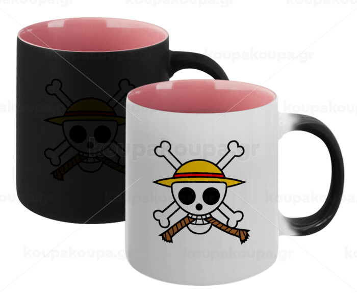 Onepiece skull, Κούπα Μαγική εσωτερικό ΡΟΖ, κεραμική 330ml που αλλάζει χρώμα με το ζεστό ρόφημα