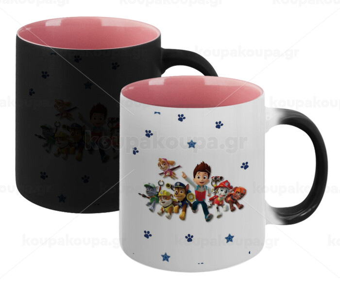 paw patrol, Κούπα Μαγική εσωτερικό ΡΟΖ, κεραμική 330ml που αλλάζει χρώμα με το ζεστό ρόφημα