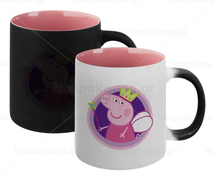 Peppa pig Queen, Κούπα Μαγική εσωτερικό ΡΟΖ, κεραμική 330ml που αλλάζει χρώμα με το ζεστό ρόφημα