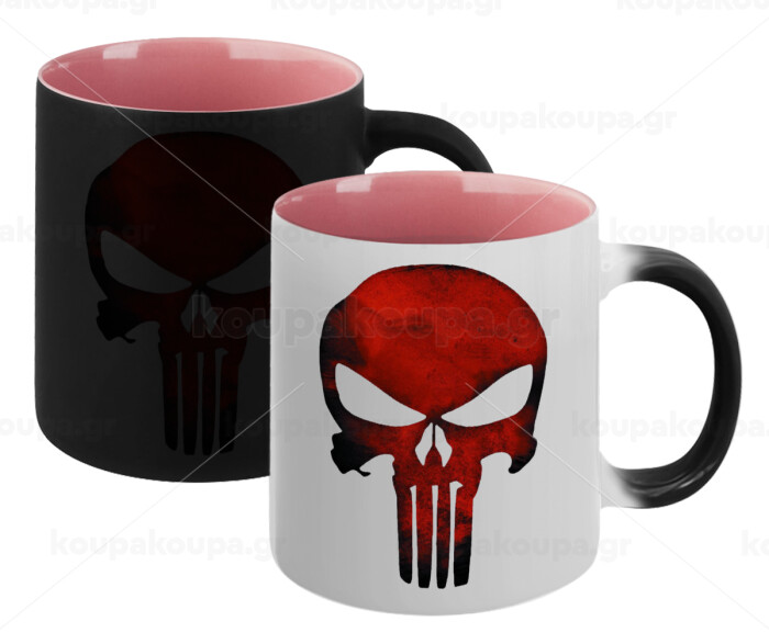 Red skull, Κούπα Μαγική εσωτερικό ΡΟΖ, κεραμική 330ml που αλλάζει χρώμα με το ζεστό ρόφημα