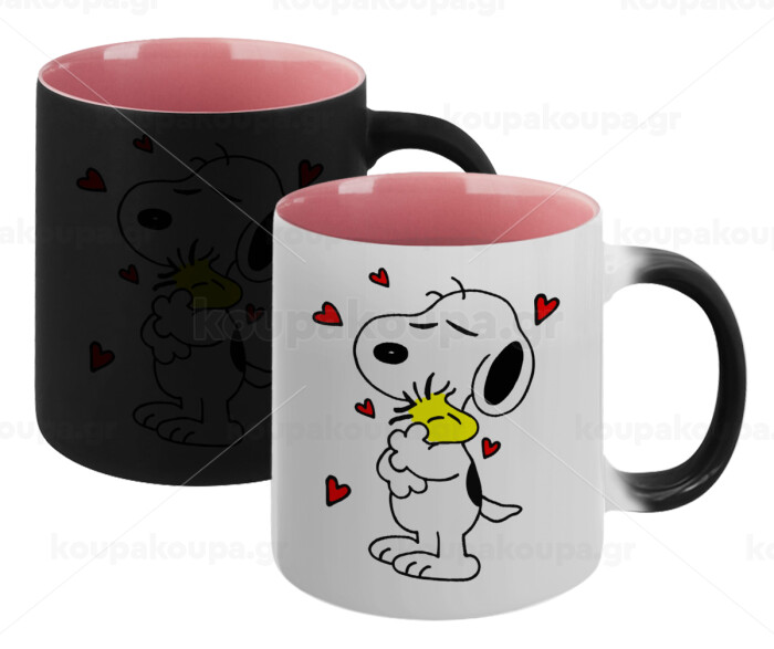 Snoopy Love, Κούπα Μαγική εσωτερικό ΡΟΖ, κεραμική 330ml που αλλάζει χρώμα με το ζεστό ρόφημα