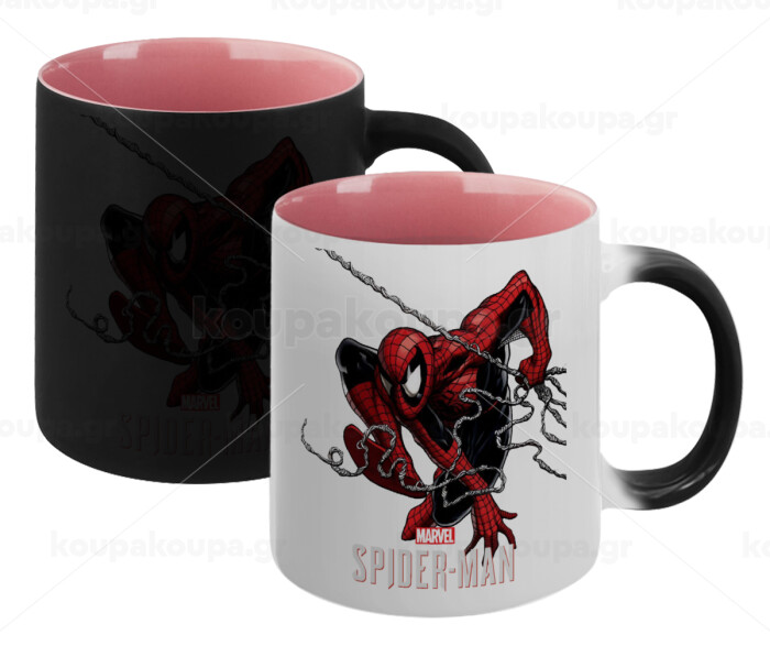 Spider-man, Κούπα Μαγική εσωτερικό ΡΟΖ, κεραμική 330ml που αλλάζει χρώμα με το ζεστό ρόφημα