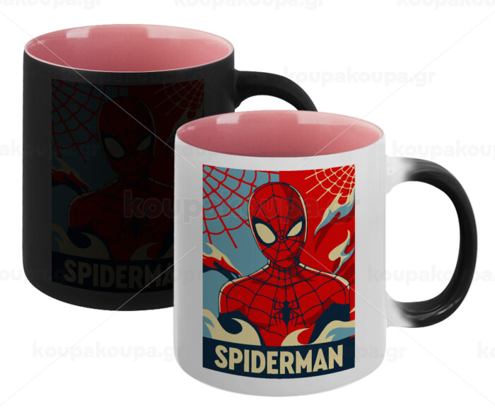 Spiderman kid, Κούπα Μαγική εσωτερικό ΡΟΖ, κεραμική 330ml που αλλάζει χρώμα με το ζεστό ρόφημα