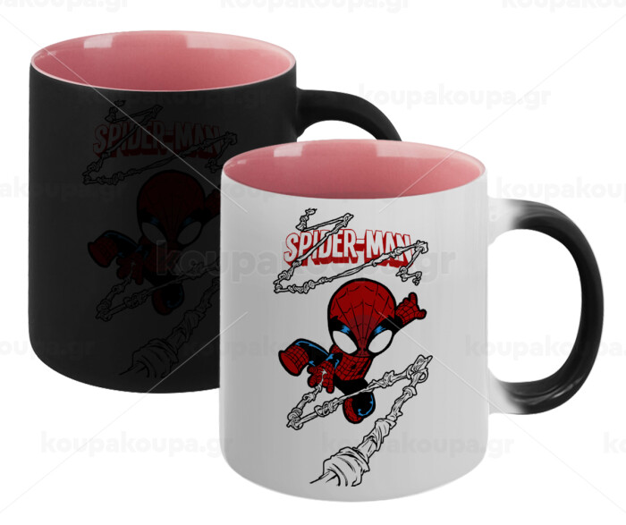 Spiderman kid, Κούπα Μαγική εσωτερικό ΡΟΖ, κεραμική 330ml που αλλάζει χρώμα με το ζεστό ρόφημα