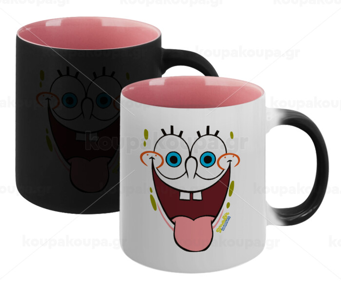 SpongeBob SquarePants smile, Κούπα Μαγική εσωτερικό ΡΟΖ, κεραμική 330ml που αλλάζει χρώμα με το ζεστό ρόφημα