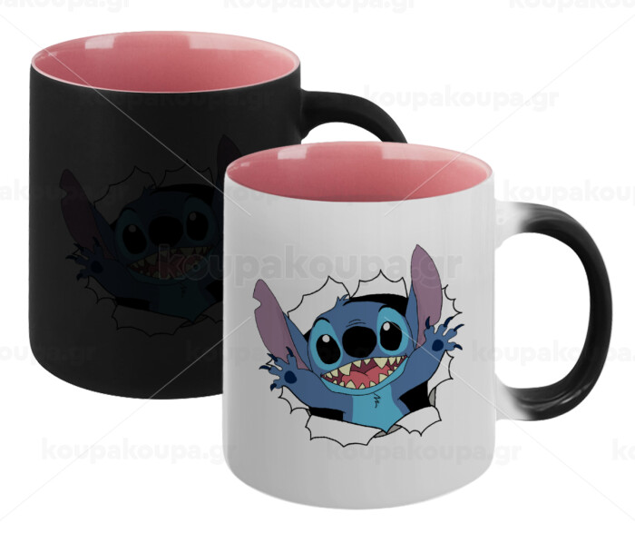 Stitch hello!!!, Κούπα Μαγική εσωτερικό ΡΟΖ, κεραμική 330ml που αλλάζει χρώμα με το ζεστό ρόφημα