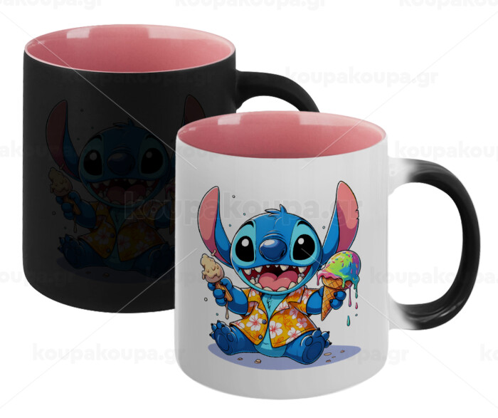 Stitch Ice cream, Κούπα Μαγική εσωτερικό ΡΟΖ, κεραμική 330ml που αλλάζει χρώμα με το ζεστό ρόφημα