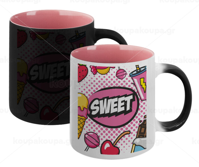 SWEET, Κούπα Μαγική εσωτερικό ΡΟΖ, κεραμική 330ml που αλλάζει χρώμα με το ζεστό ρόφημα