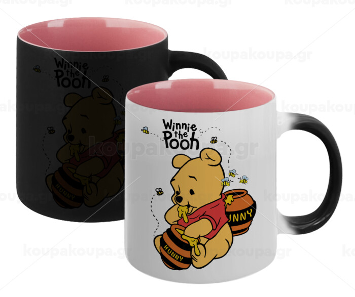 Winnie the Pooh, Κούπα Μαγική εσωτερικό ΡΟΖ, κεραμική 330ml που αλλάζει χρώμα με το ζεστό ρόφημα