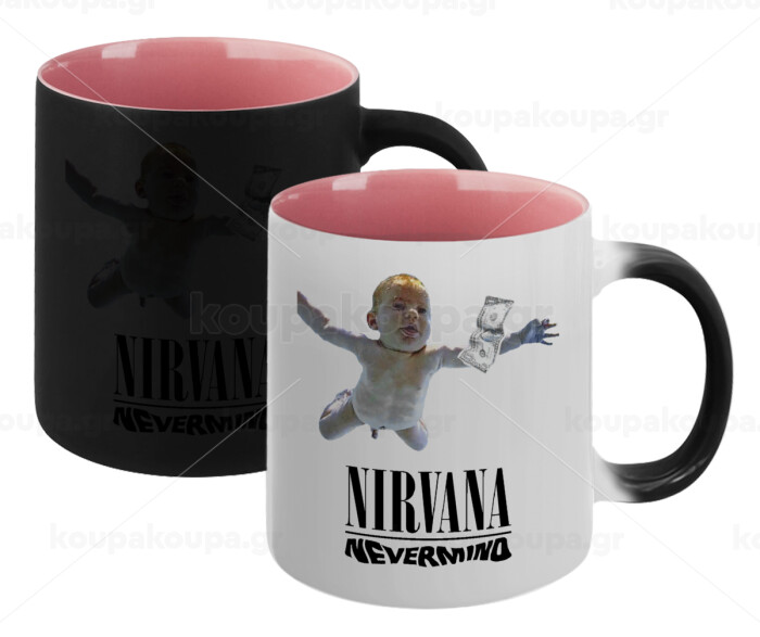 Nirvana nevermind, Κούπα Μαγική εσωτερικό ΡΟΖ, κεραμική 330ml που αλλάζει χρώμα με το ζεστό ρόφημα