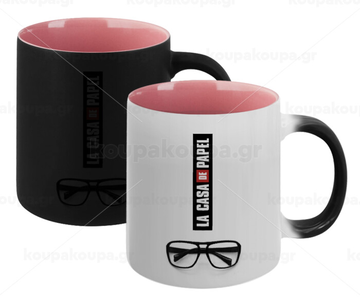la professor, γυαλιά, Κούπα Μαγική εσωτερικό ΡΟΖ, κεραμική 330ml που αλλάζει χρώμα με το ζεστό ρόφημα