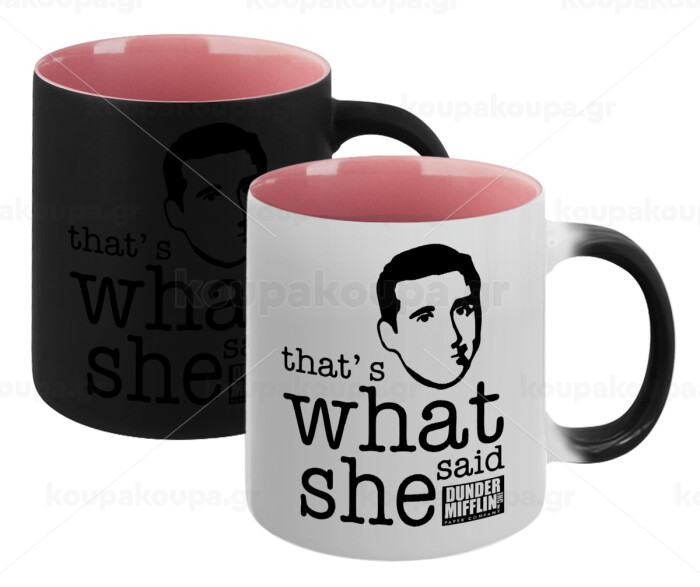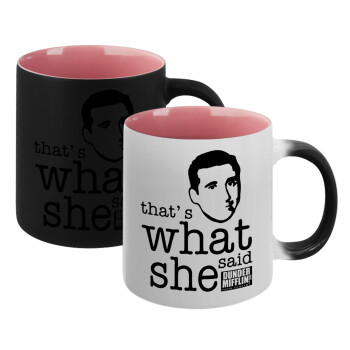 The office Michael That's what she said, Κούπα Μαγική εσωτερικό ΡΟΖ, κεραμική 330ml που αλλάζει χρώμα με το ζεστό ρόφημα