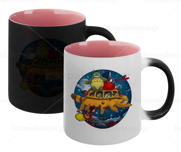 Totoro Catbus, Κούπα Μαγική εσωτερικό ΡΟΖ, κεραμική 330ml που αλλάζει χρώμα με το ζεστό ρόφημα