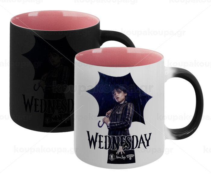 Wednesday rain, Κούπα Μαγική εσωτερικό ΡΟΖ, κεραμική 330ml που αλλάζει χρώμα με το ζεστό ρόφημα