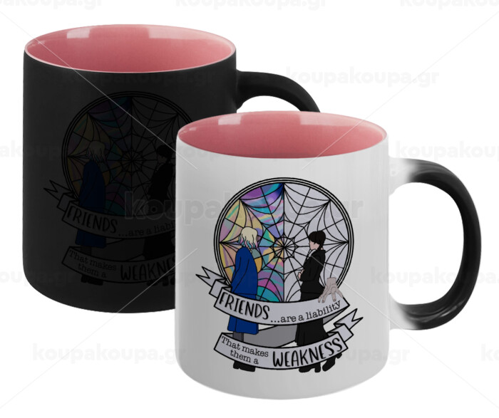 Wednesday window, Κούπα Μαγική εσωτερικό ΡΟΖ, κεραμική 330ml που αλλάζει χρώμα με το ζεστό ρόφημα