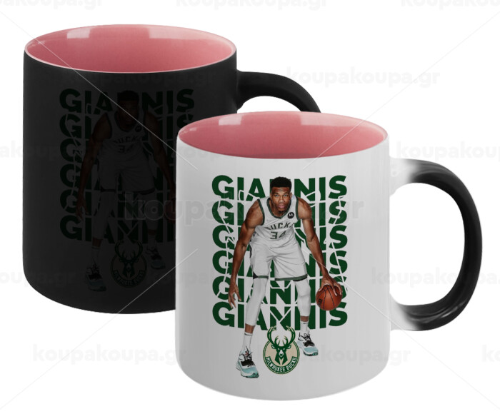 Giannis Antetokounmpo, Κούπα Μαγική εσωτερικό ΡΟΖ, κεραμική 330ml που αλλάζει χρώμα με το ζεστό ρόφημα