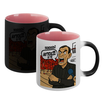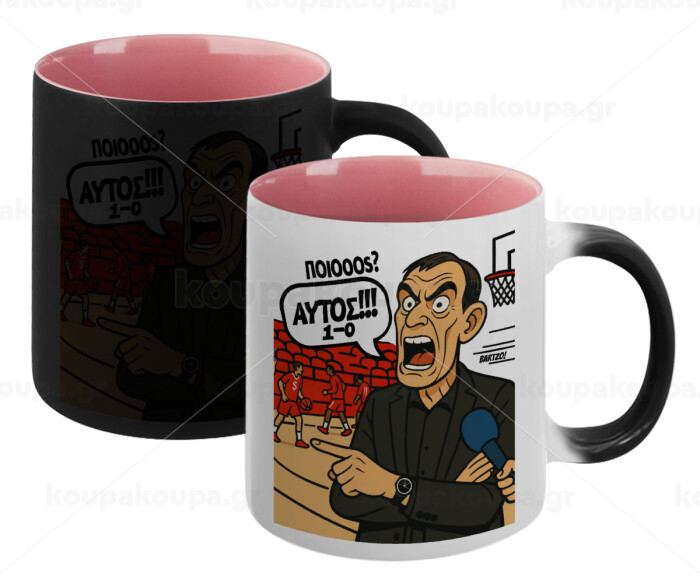 Μπαρτζό, Ποιος? Αυτός!!! 1-0, Κούπα Μαγική εσωτερικό ΡΟΖ, κεραμική 330ml που αλλάζει χρώμα με το ζεστό ρόφημα