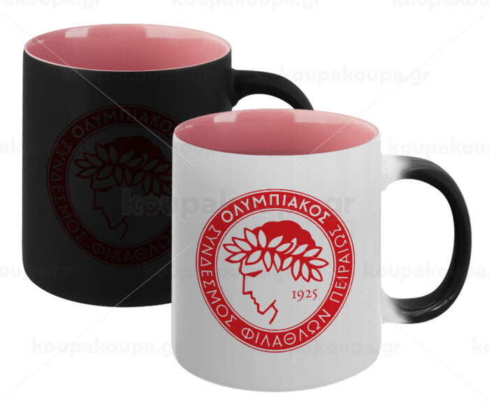 Ολυμπιακός, Κούπα Μαγική εσωτερικό ΡΟΖ, κεραμική 330ml που αλλάζει χρώμα με το ζεστό ρόφημα