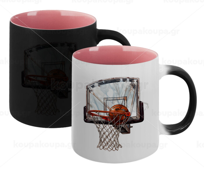 Basketball, Κούπα Μαγική εσωτερικό ΡΟΖ, κεραμική 330ml που αλλάζει χρώμα με το ζεστό ρόφημα