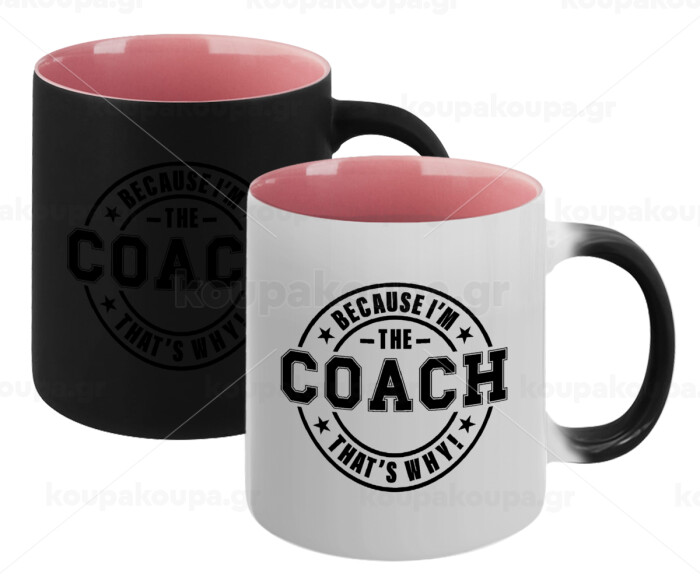 Because i'm the Coach, Κούπα Μαγική εσωτερικό ΡΟΖ, κεραμική 330ml που αλλάζει χρώμα με το ζεστό ρόφημα