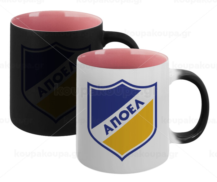 FC ΑΠΟΕΛ Λευκωσίας, Κούπα Μαγική εσωτερικό ΡΟΖ, κεραμική 330ml που αλλάζει χρώμα με το ζεστό ρόφημα