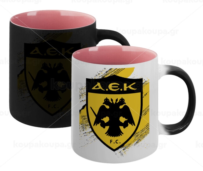 FC Α.Ε.Κ., Κούπα Μαγική εσωτερικό ΡΟΖ, κεραμική 330ml που αλλάζει χρώμα με το ζεστό ρόφημα