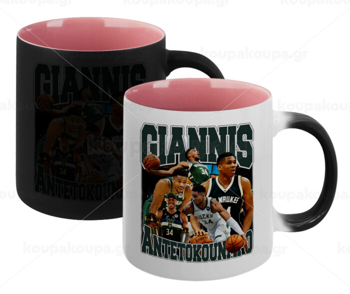 Giannis Antetokounmpo, Κούπα Μαγική εσωτερικό ΡΟΖ, κεραμική 330ml που αλλάζει χρώμα με το ζεστό ρόφημα