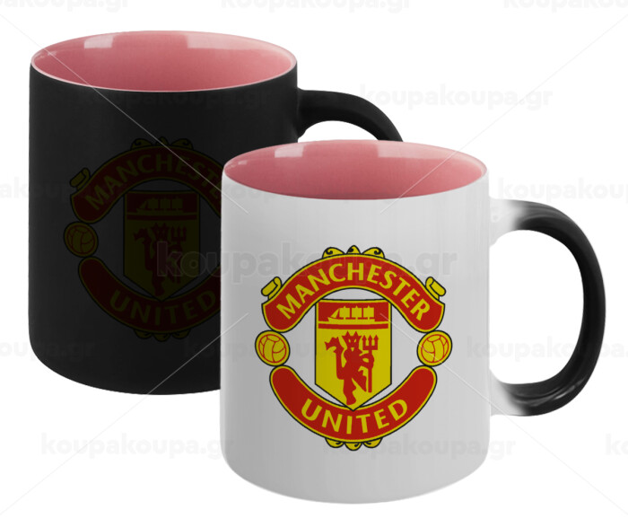 Manchester United F.C., Κούπα Μαγική εσωτερικό ΡΟΖ, κεραμική 330ml που αλλάζει χρώμα με το ζεστό ρόφημα