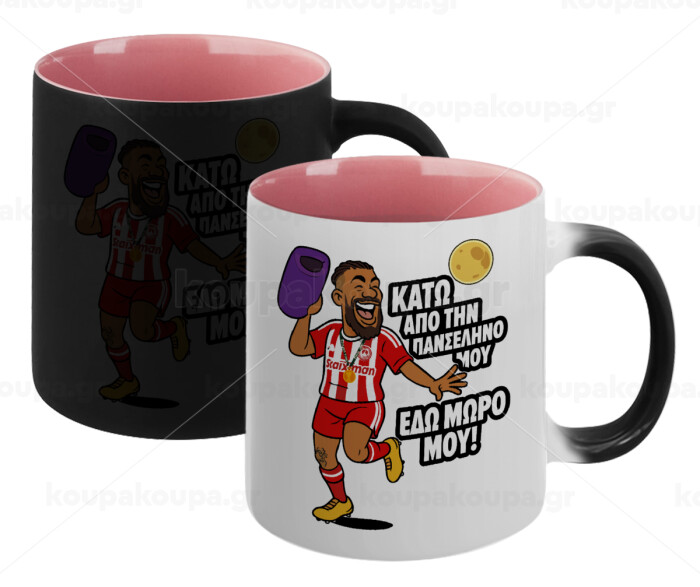 Ροντινέι, "ΚΑΤΩ ΑΠΟ ΤΗΝ ΠΑΝΣΕΛΗΝΟ ΜΟΥ!", Κούπα Μαγική εσωτερικό ΡΟΖ, κεραμική 330ml που αλλάζει χρώμα με το ζεστό ρόφημα
