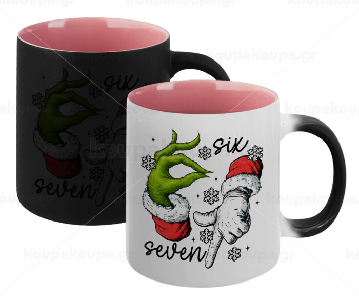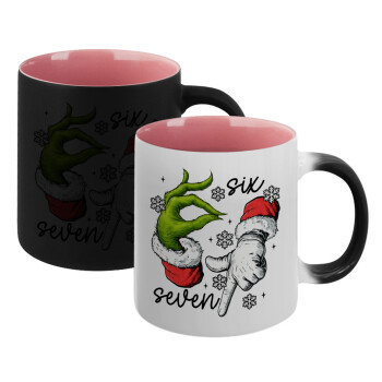 Christmas Meme SIX SEVEN (67), Κούπα Μαγική εσωτερικό ΡΟΖ, κεραμική 330ml που αλλάζει χρώμα με το ζεστό ρόφημα