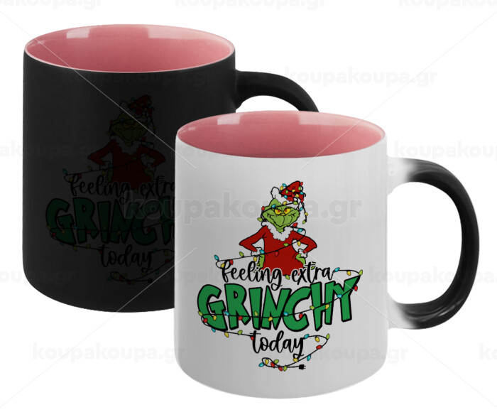 Grinch Feeling Extra Grinchy Today, Κούπα Μαγική εσωτερικό ΡΟΖ, κεραμική 330ml που αλλάζει χρώμα με το ζεστό ρόφημα