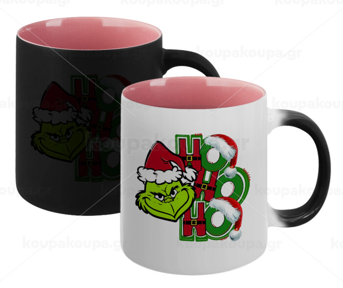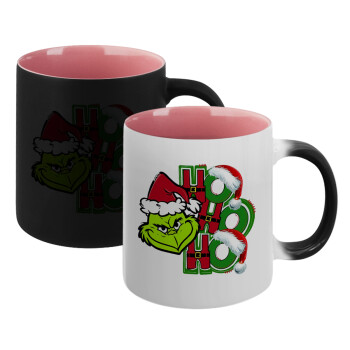 Grinch ho ho ho, Κούπα Μαγική εσωτερικό ΡΟΖ, κεραμική 330ml που αλλάζει χρώμα με το ζεστό ρόφημα