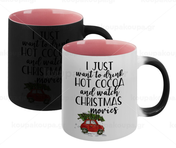 I just want to drink hot cocoa and watch christmas movies mini cooper, Κούπα Μαγική εσωτερικό ΡΟΖ, κεραμική 330ml που αλλάζει χρώμα με το ζεστό ρόφημα