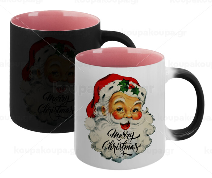 Santa vintage, Κούπα Μαγική εσωτερικό ΡΟΖ, κεραμική 330ml που αλλάζει χρώμα με το ζεστό ρόφημα