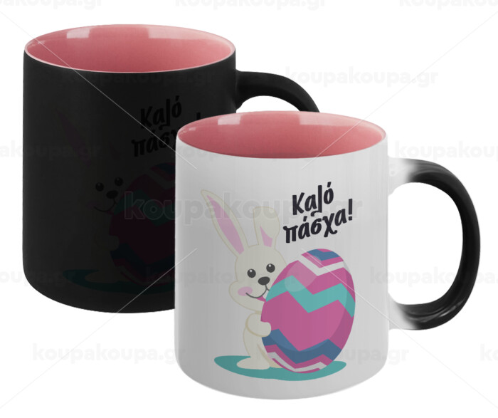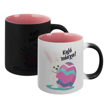 Καλό πάσχα, Κούπα Μαγική εσωτερικό ΡΟΖ, κεραμική 330ml που αλλάζει χρώμα με το ζεστό ρόφημα