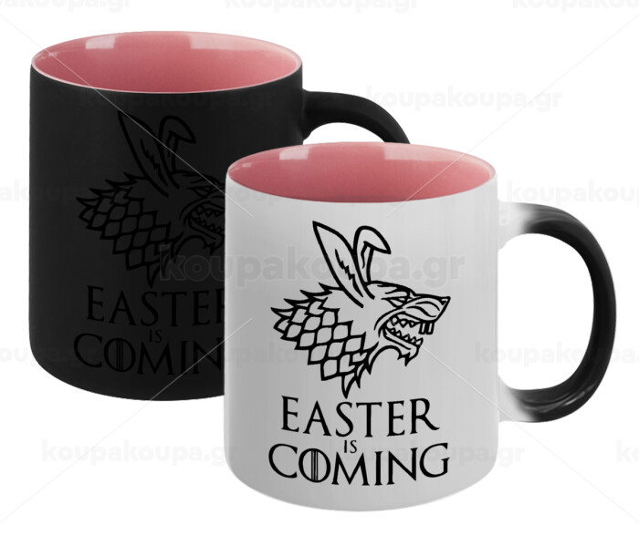 Easter is coming (GOT), Κούπα Μαγική εσωτερικό ΡΟΖ, κεραμική 330ml που αλλάζει χρώμα με το ζεστό ρόφημα