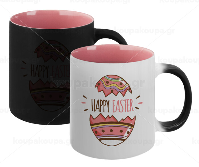 Happy easter egg, Κούπα Μαγική εσωτερικό ΡΟΖ, κεραμική 330ml που αλλάζει χρώμα με το ζεστό ρόφημα
