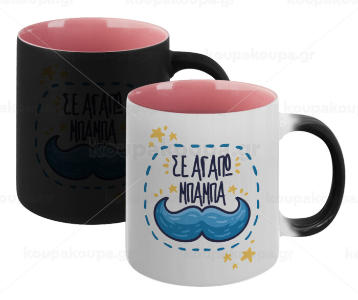 Σε αγαπώ μπαμπά!!!, Κούπα Μαγική εσωτερικό ΡΟΖ, κεραμική 330ml που αλλάζει χρώμα με το ζεστό ρόφημα